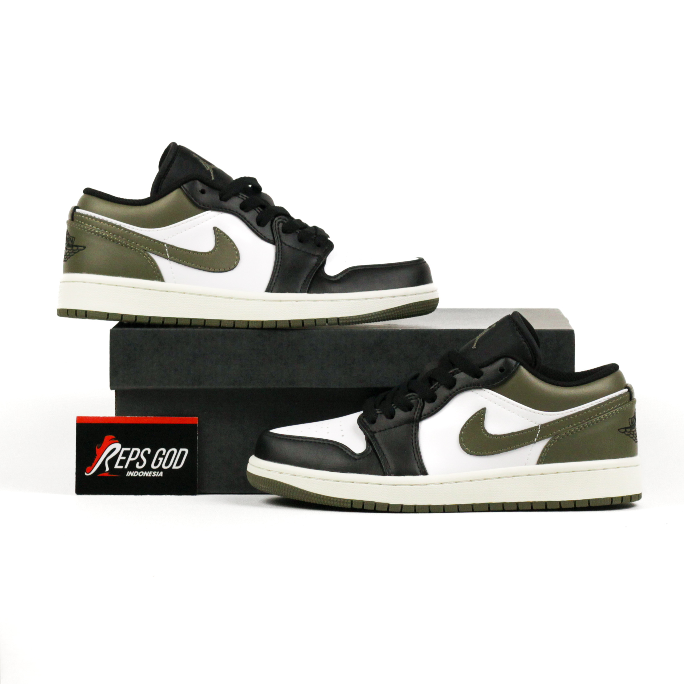Sepatu Nike Air Jordan 1 Low Medium Olive Black Sneakers Authentic